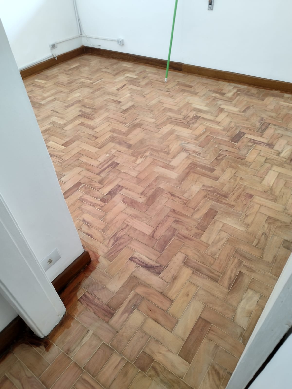 Limpamos, restauramos e revitalizamos pisos de taco, recuperando o tom original da madeira e deixando o ambiente renovado.